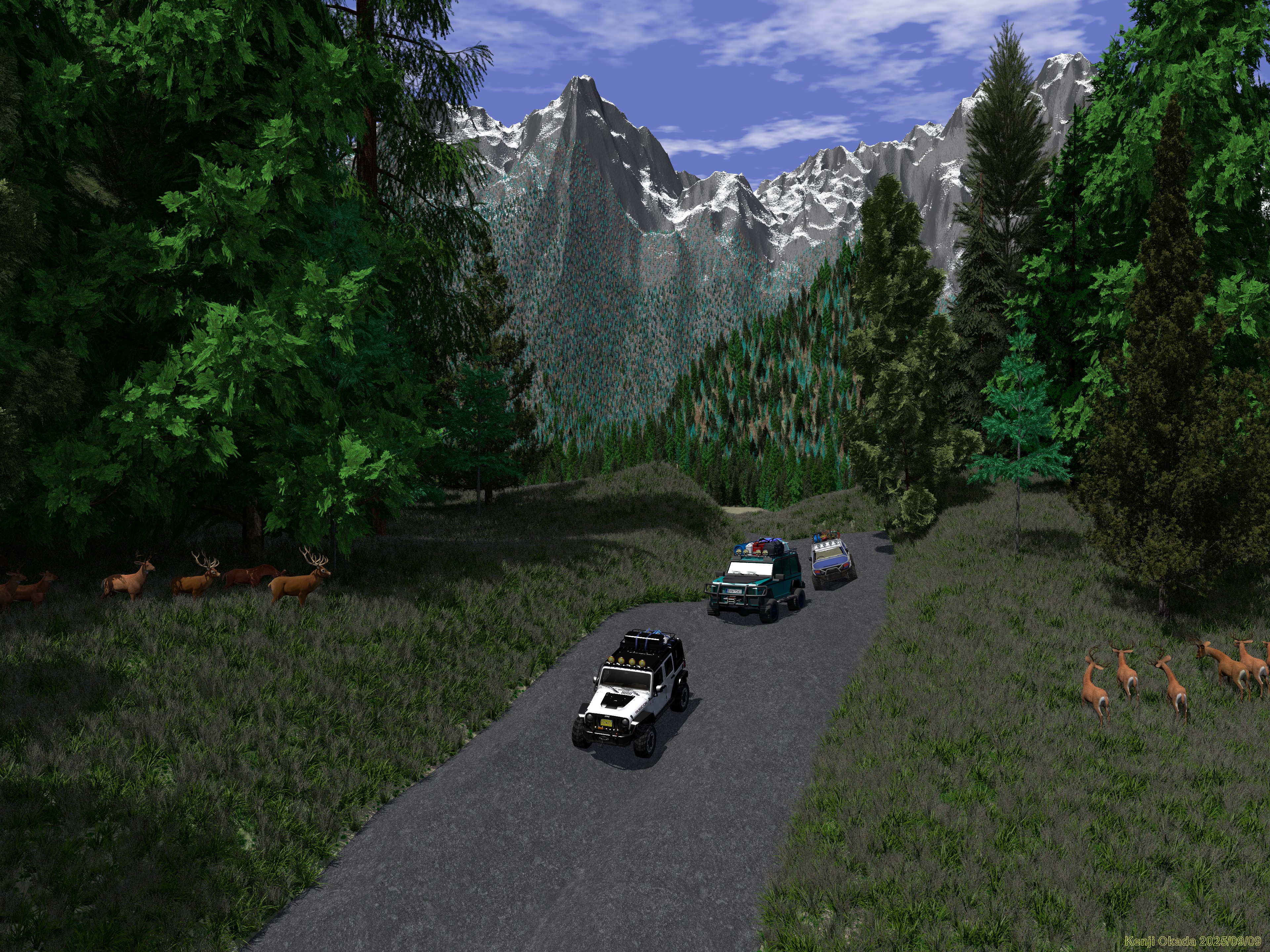 ≪ 完全装備のクロスカントリー・ビークル ≫ 製作過程については、下記のブログ記事に詳細を記しています。 Blog "POV-Ray"で作成した3DCG、『完全装備のクロスカントリー・ビークル』 | KOKAのつぶやき Update (2025/08/29)