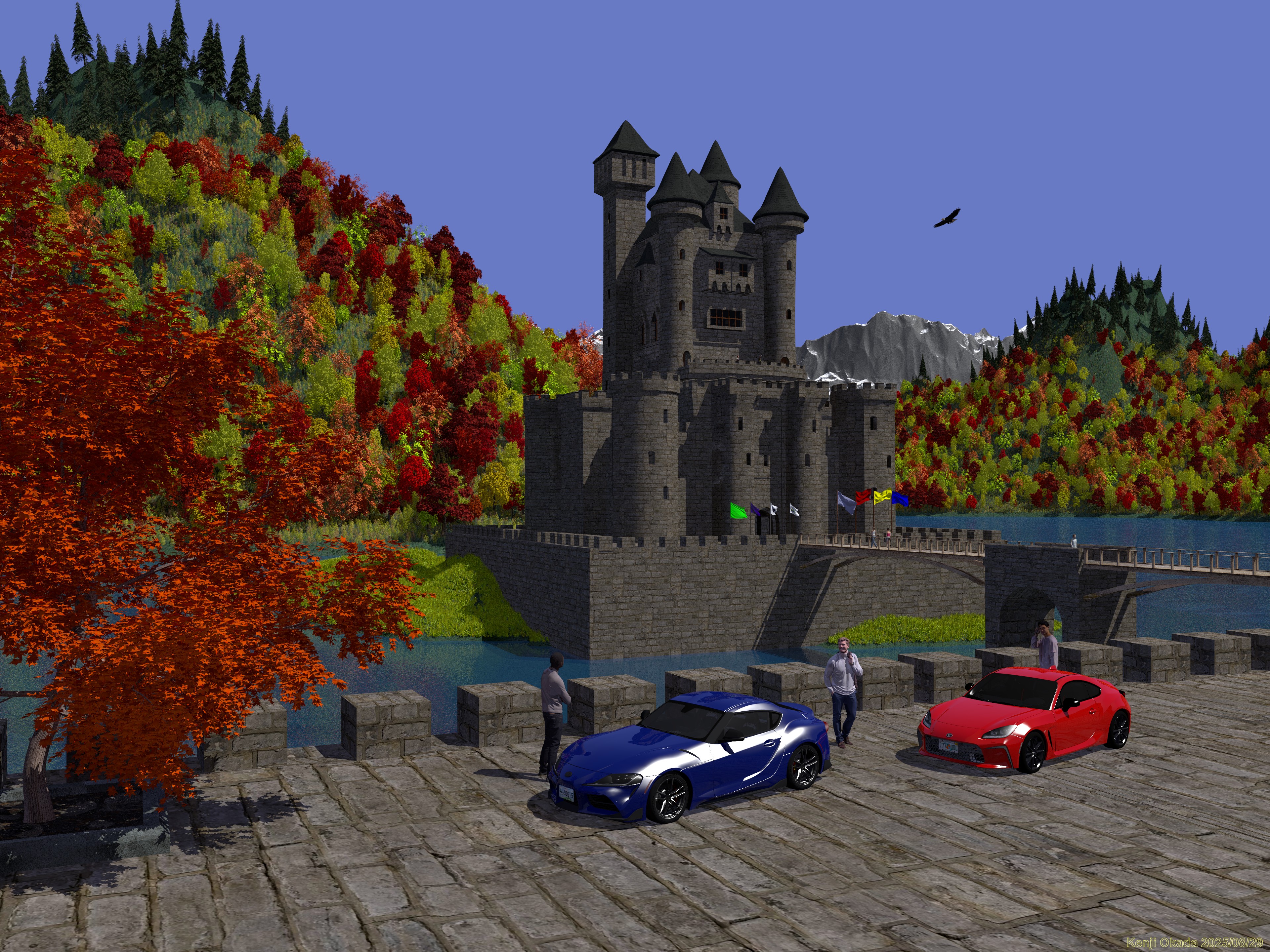 ≪ トヨタ・GR86とトヨタ・GRスープラと湖上の城 ≫ 製作過程については、下記のブログ記事に詳細を記しています。 Blog "POV-Ray"で作成した3DCG、『トヨタ・GR86とトヨタ・GRスープラと湖上の城』 | KOKAのつぶやき Update (2025/08/20)